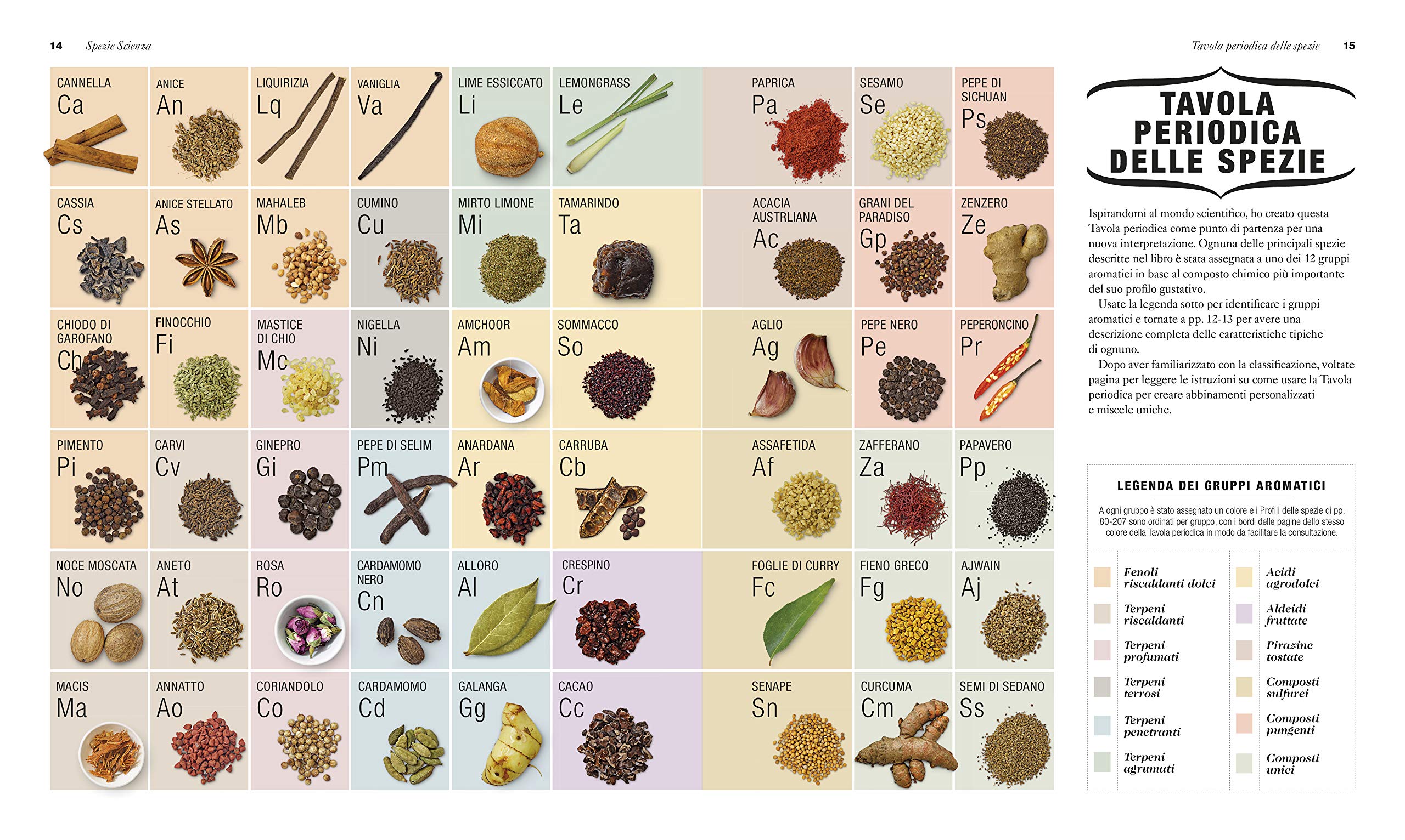 Pensata per chef, amanti della cucina e appassionati di spezie, un’opera che racconta la chimica e l’utilizzo delle spezie in abbinamento con gli ingredienti più diversi, ma anche la loro storia, la provenienza e gli aspetti culturali. Creare miscele originali, ma anche capire come e perché interagiscono fra loro gli aromi e i sapori: grazie a 65 ricette innovative, e alla “tavola periodica” che classifica oltre 50 spezie, questo libro è una grande fonte di ispirazione.